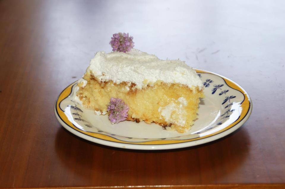 Bata as claras em neve e reserve. Bata as gemas com o açúcar e acrescente um pouco do suco, deixe bater até ficar bem cremoso junte aos poucos a farinha já misturada com o fermento e alterne com o suco, acrescente o sal. Desligue a batedeira e junte delicadamente as claras em neve deve se envolver em forma de 8. Leve ao forno pré-aquecido na temperatura média ou 180° por 40 minutos. Desenforme o bolo ainda quente, colocando-o em um prato ou tábua com um diâmetro maior por causa do marshmellow. Ainda quente, molhe o bolo com toda a calda , cubra com filme de PVC ou papel alumínio e deixe na geladeira por 8 horas. Cubra com o marshmellow fazendo ondas com o cabo de uma colher e decore com coco em. flocos ou em fita. Se preferir, coloque umas cerejas.